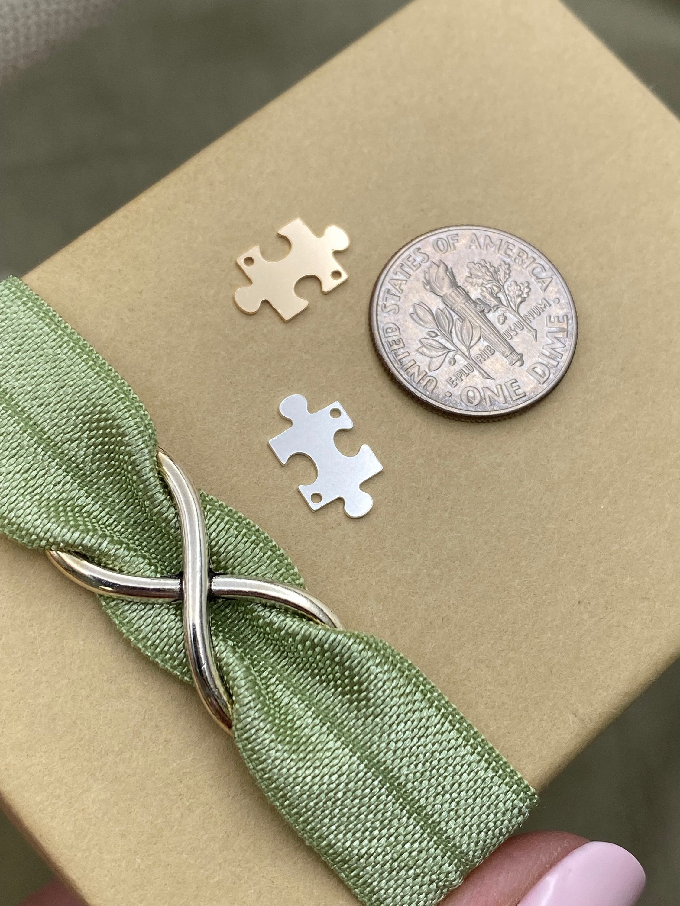 These Puzzle Piece links are the perfect size for using as a connector for permanent jewelry chains.