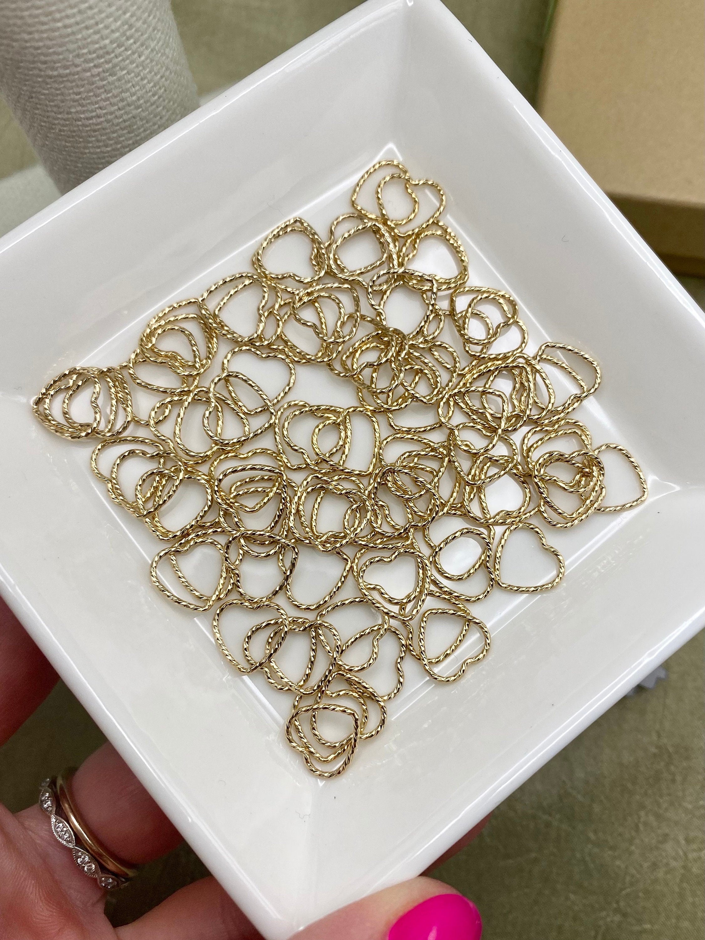These heart charms are the perfect size for using as a connector for permanent jewelry chains.